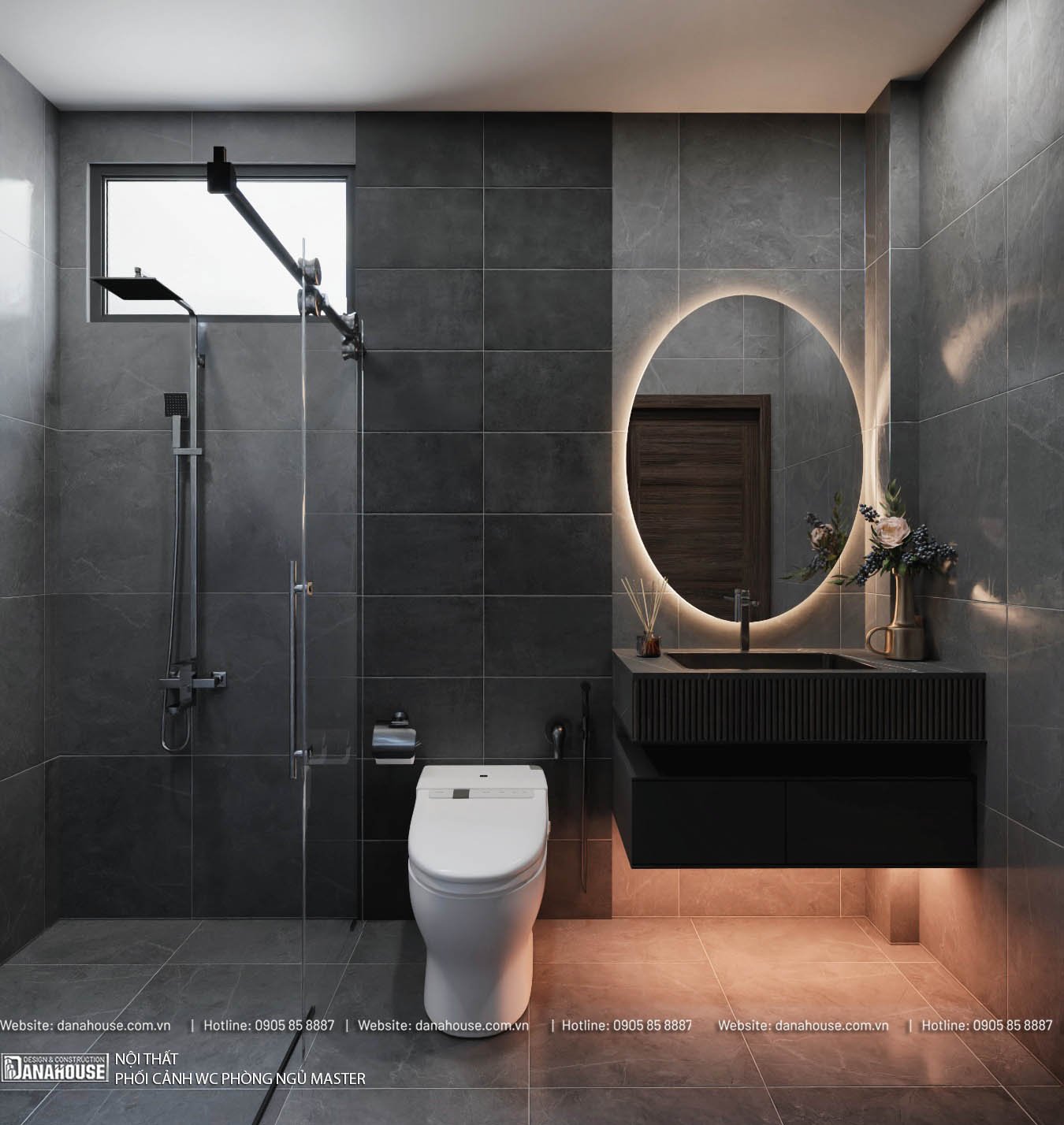 - Trang trí: Khăn tắm màu trung tính, cây cảnh nhỏ, gương lớn.