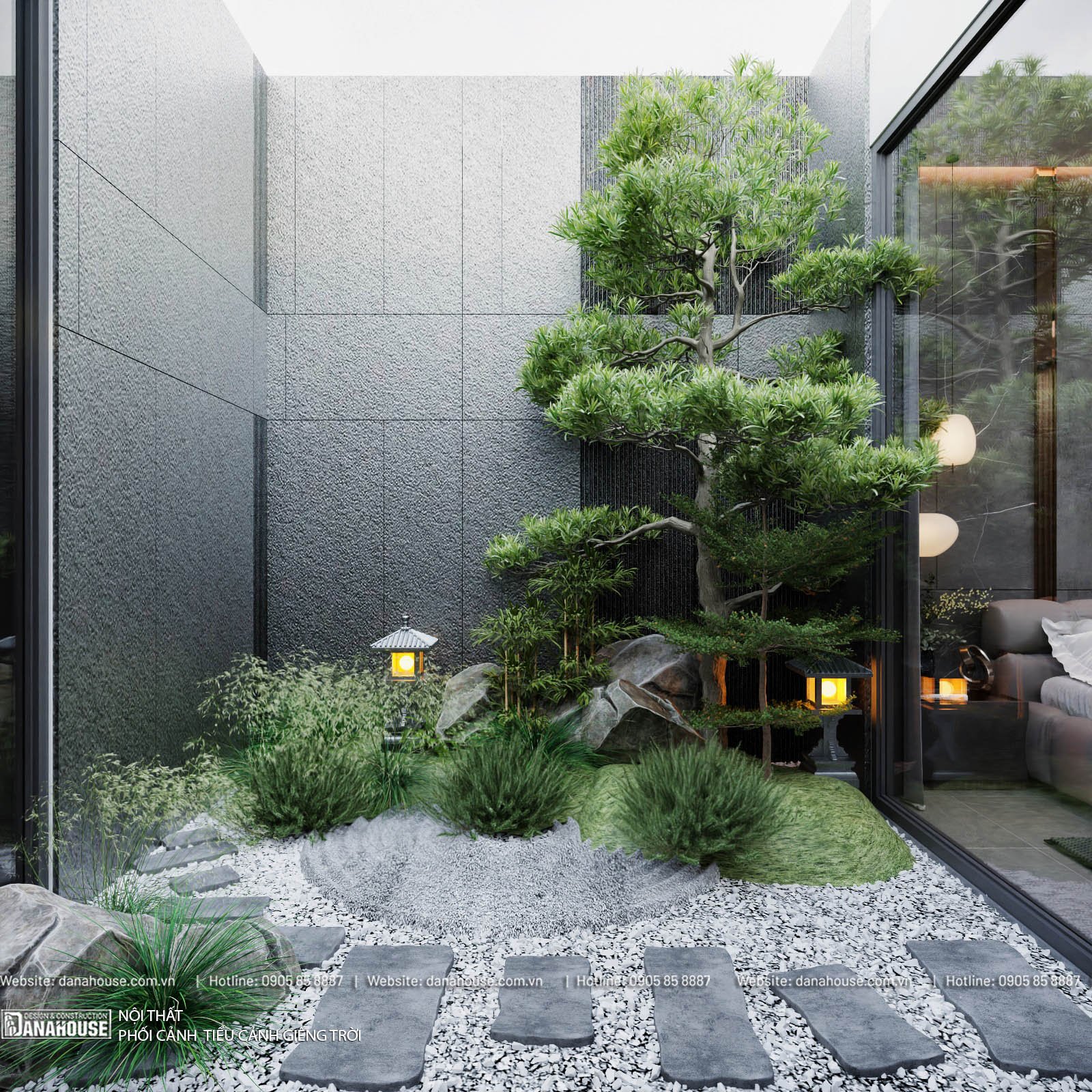 - Trang trí: Cây cảnh, hoa, đèn trang trí ngoài trời.