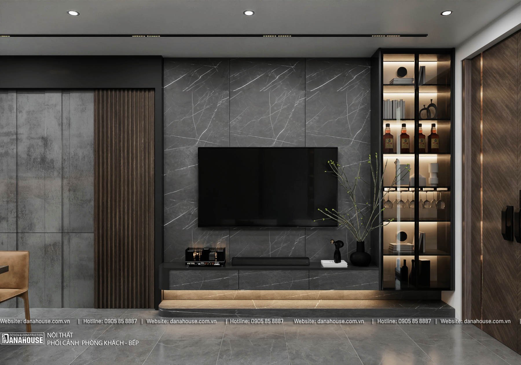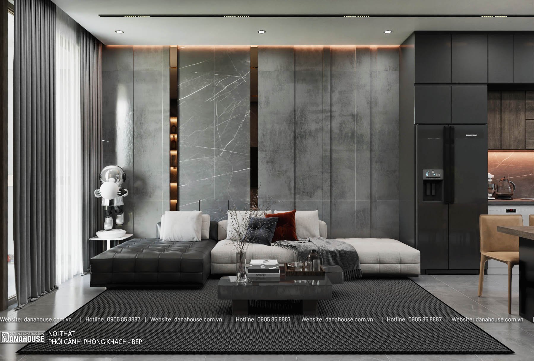 - Vị trí: Liền kề phòng khách, tạo sự liền mạch trong không gian sinh hoạt chung.