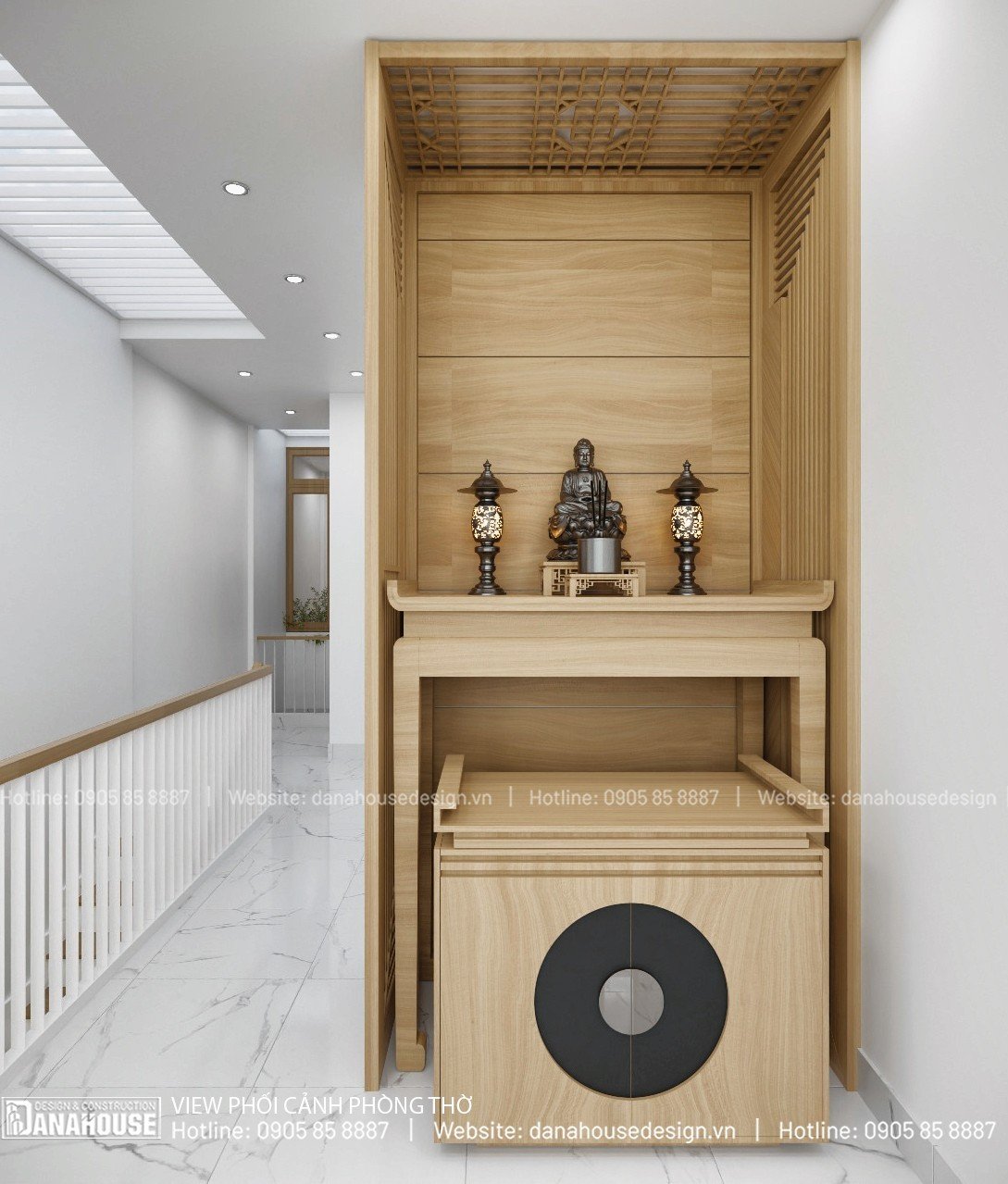Tầng 2 của ngôi nhà là không gian dành cho việc nghỉ ngơi và sinh hoạt gia đình. Hai phòng ngủ tiếp tục mang đến sự thoải mái và riêng tư, cùng với một phòng thờ và một wc. Sân phơi được bố trí ở phía trước, tạo điều kiện thuận lợi cho việc phơi đồ và thoáng mát.