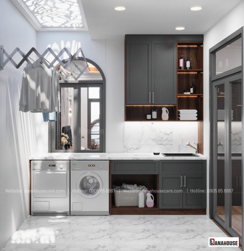 Phòng bếp được thiết kế với tủ bếp gỗ cao cấp, bàn đá, bếp từ, máy hút mùi và máy rửa chén. Phòng ngủ được thiết kế với giường ngủ lớn, tủ quần áo, bàn làm việc và đèn ngủ. Phòng thờ được thiết kế với bàn thờ gỗ, quạt trần và đèn led. Sân trước và sân sau được thiết kế với ghế đá, bàn ghế cafe và cây cảnh.