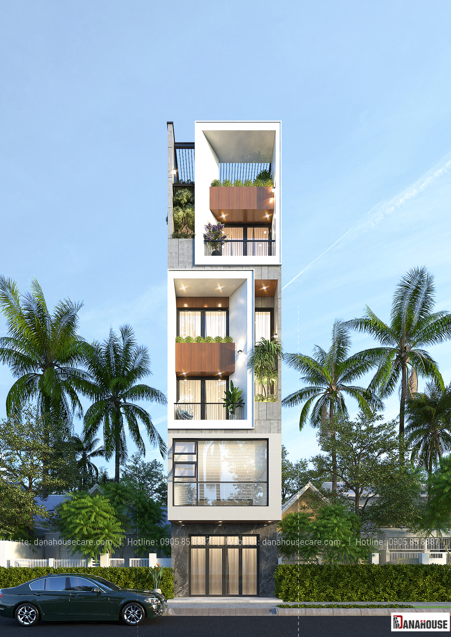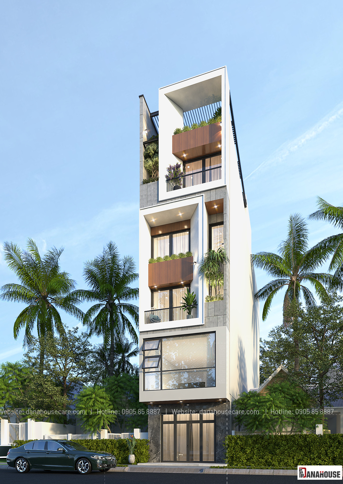 Nhà phố thiết kế hiện đại – Anh Khôi Thông tin công trình NHÀ PHỐ PHONG CÁCH HIỆN ĐẠI Vị trí công trình Quận Cẩm Lệ, TP. Đà Nẵng Diện tích đất 5 x 20m Diện tích xây dựng 550M2 Quy mô 5 TẦNG