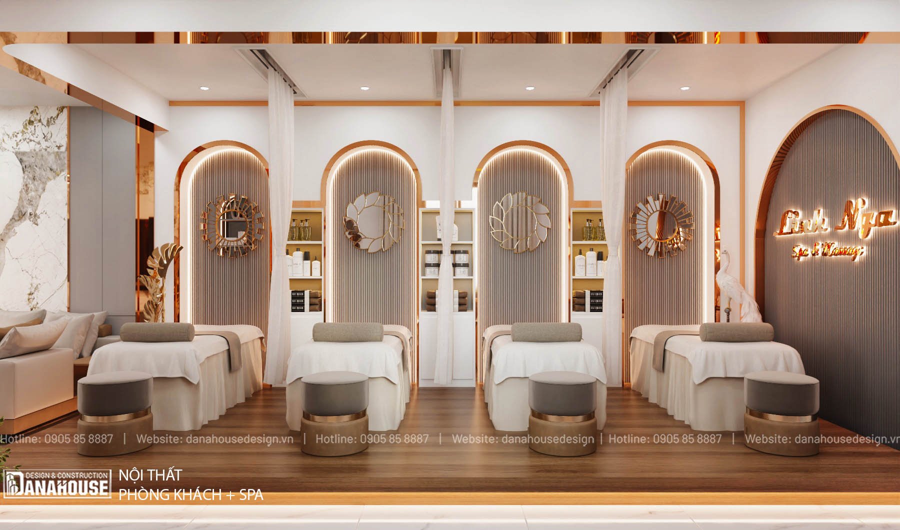 Tận dụng mọi mét vuông của ngôi nhà, từng góc cạnh được thiết kế một cách tỉ mỉ và chức năng. Tầng trệt được sử dụng cho kinh doanh spa với không gian tiếp khách thoải mái và hiện đại, hòng spa, wc, bếp, sân giặt phơi sau, trong khi tầng trên được dành riêng cho không gian sống riêng tư của gia đình, với 3 phòng ngủ thoải mái và tiện nghi, 2wc, ban công trước sau.