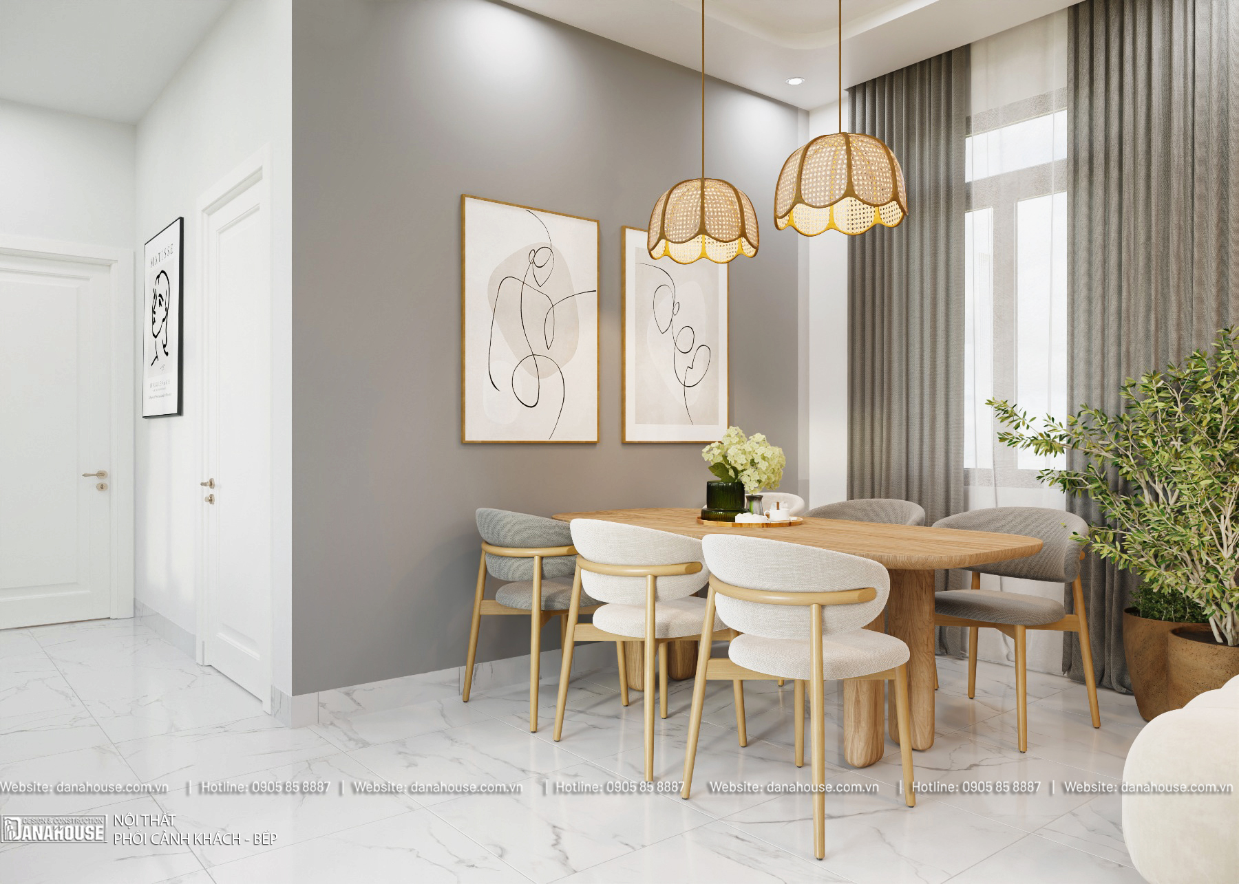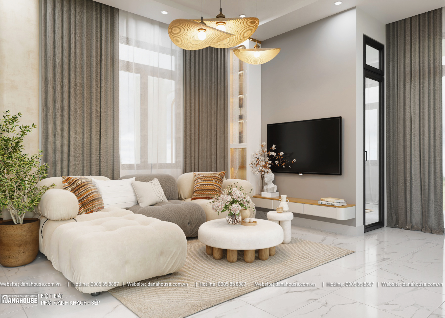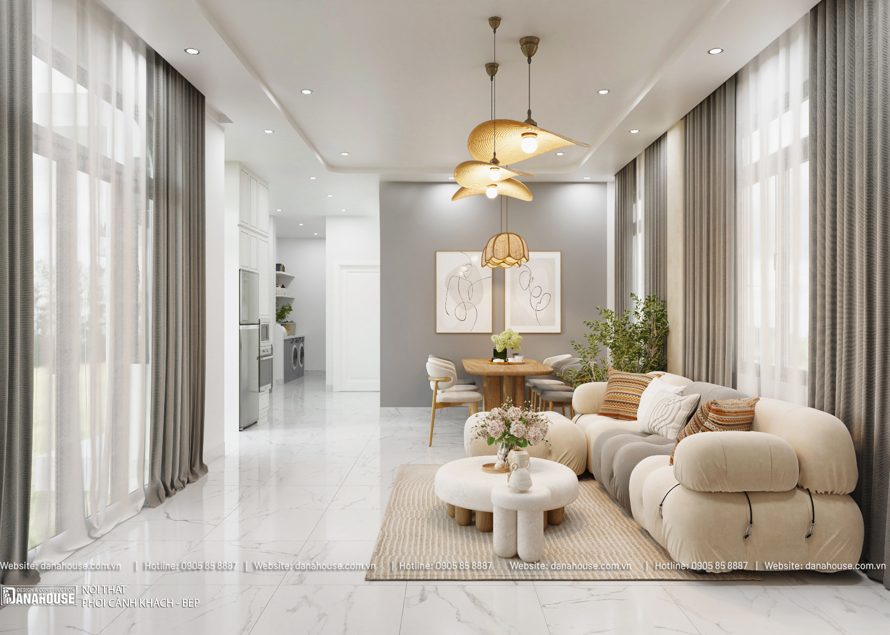 Kiến trúc sư của Danahouse sẽ thiết kế mặt bằng nội thất giúp khách hàng hình dung về cách phân chia không gian, bố trí nội thất và các thiết bị trong nhà. Sau khi khách hàng đồng ý, Danahouse sẽ tạo bản vẽ 3D chi tiết, cho phép khách hàng hình dung rõ hơn về màu sắc, chất liệu mong muốn khi thiết kế nội thất.