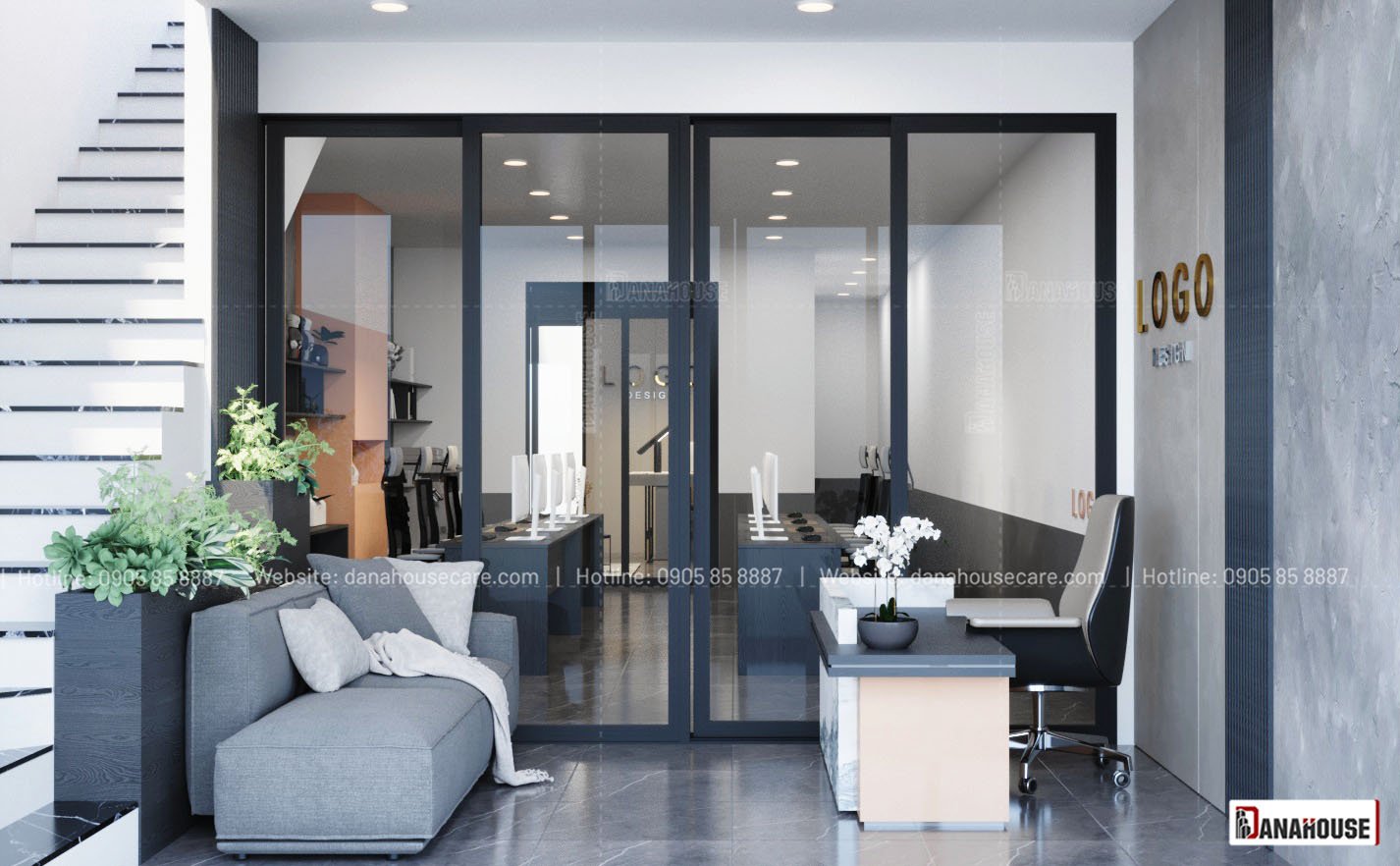 Một văn phòng làm việc của anh CĐT người Thủ Đô, anh về Đà Nẵng mở chi nhánh văn phòng, vừa là nơi để nhân viên làm việc, vừa có 1 tầng cho anh sinh hoạt khi bay từ Hà Nội vào.