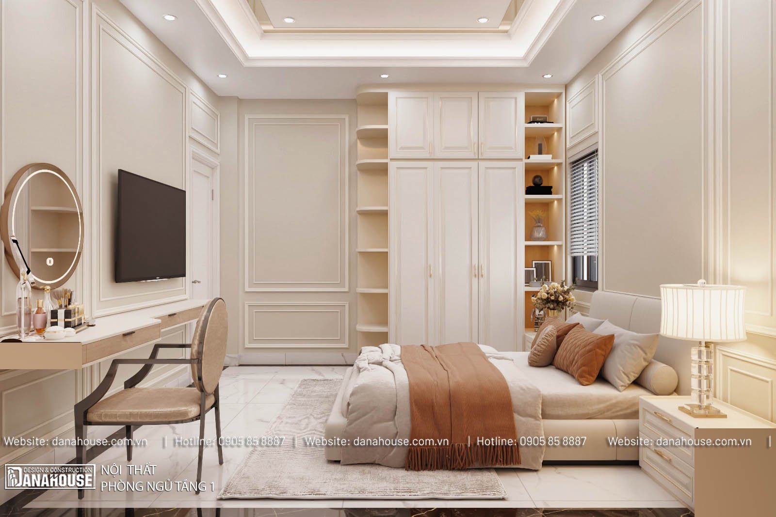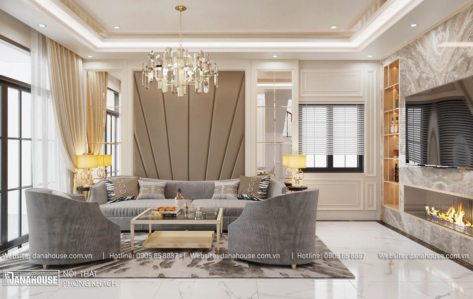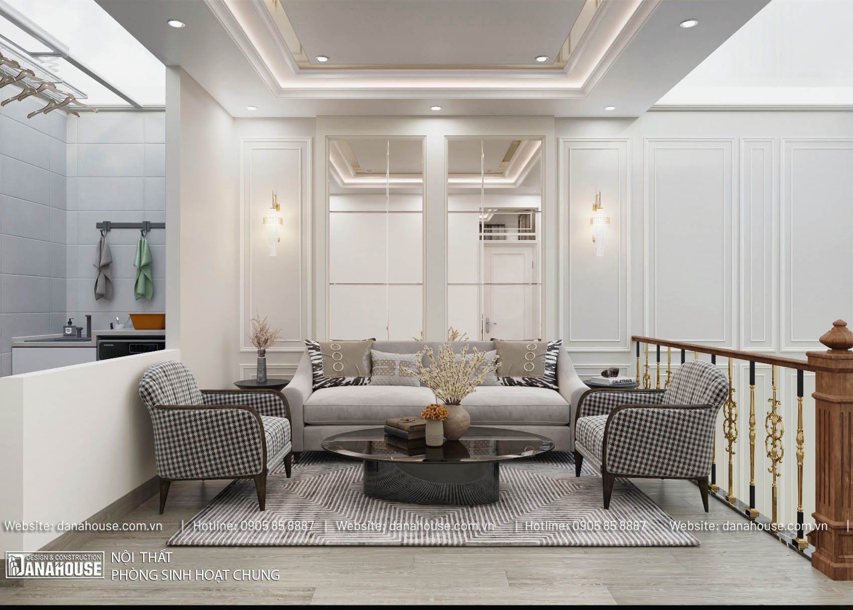 Với diện tích đất 10x25m rộng rãi, thiết kế biệt thự tập trung vào sự hiện đại, sang trọng với không gian phòng khách sang trọng, nơi để gia đình quây quần cũng như để tiếp khách, giúp ba mẹ vợ của anh được nở mày nở mặt với bà con chòm xóm.